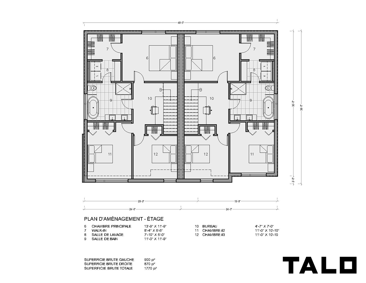 À l’étage, cette maison comporte 3 chambres ayant de bonnes dimensions, avec une salle de bain et la buanderie. Un espace bureau se trouve le long de l’escalier.