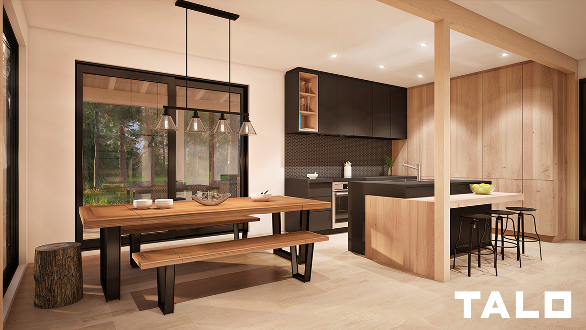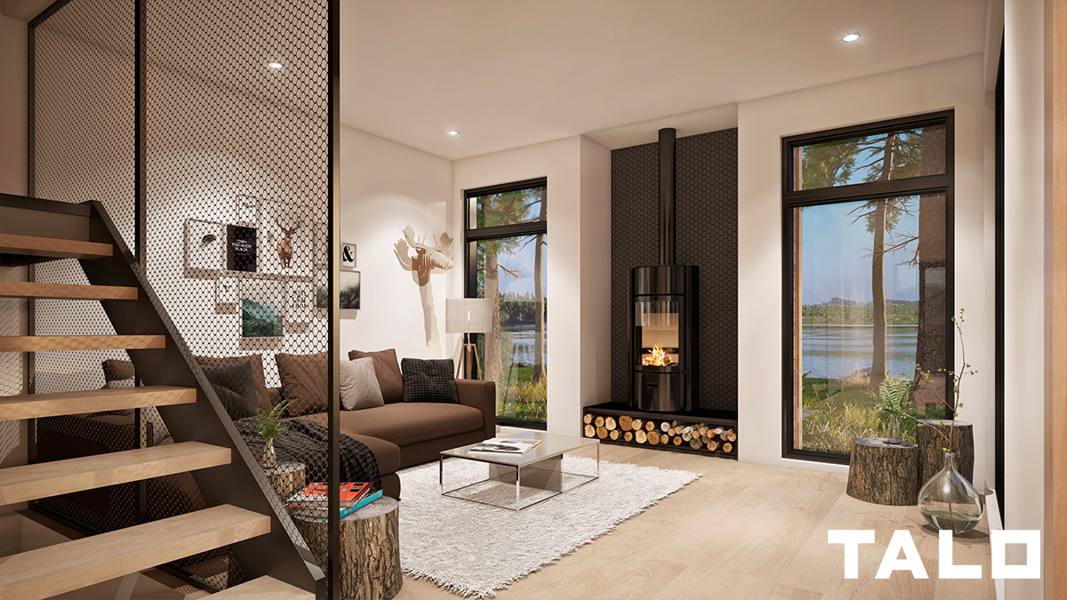 La maison UNGAVA est une résidence de villégiature conçue pour s’intégrer dans un environnement naturel, sur un terrain boisé ou sur la rive d’un lac. Le mur arrière entièrement vitré permet aux occupants de profiter pleinement de la vue.