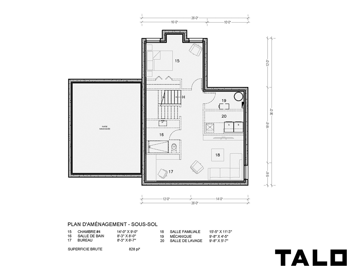 À l’étage, la maison UNGAVA présente 3 chambres, dont une spectaculaire chambre-maître qui offre la même vue qu’au rez-de-chaussée. On y trouve aussi une salle de bain complète, avec un bain et une douche séparés, et une grande luminosité.